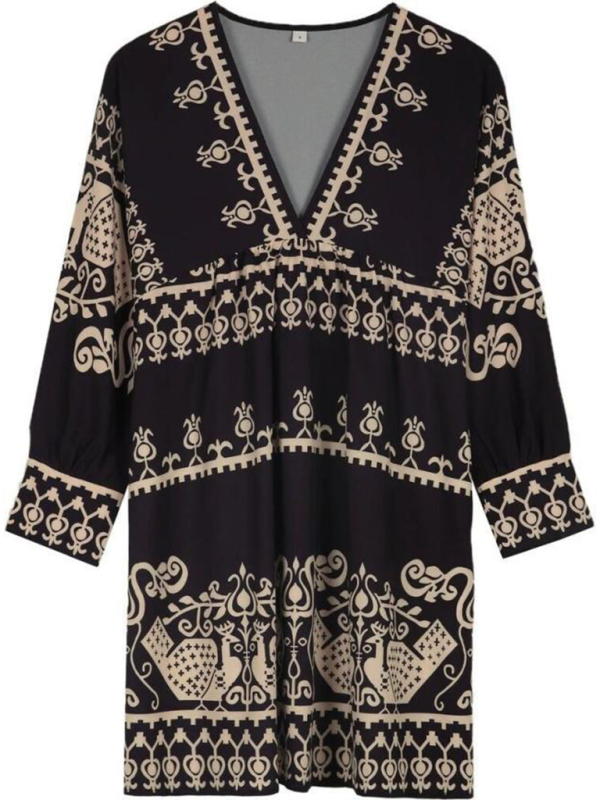 Women’s Bohemian Ethnic Style 3/4 Sleeve Dress with Trendy Style and Soft and Comfortable Fabric. It can be worn for daily, dating, going out, vacation and so on. Washing method can be machine wash or hand wash. Fabric resists wrinkling and pilling. The size is measured by hand, and it is normal for there to be an error of 1-3cm.