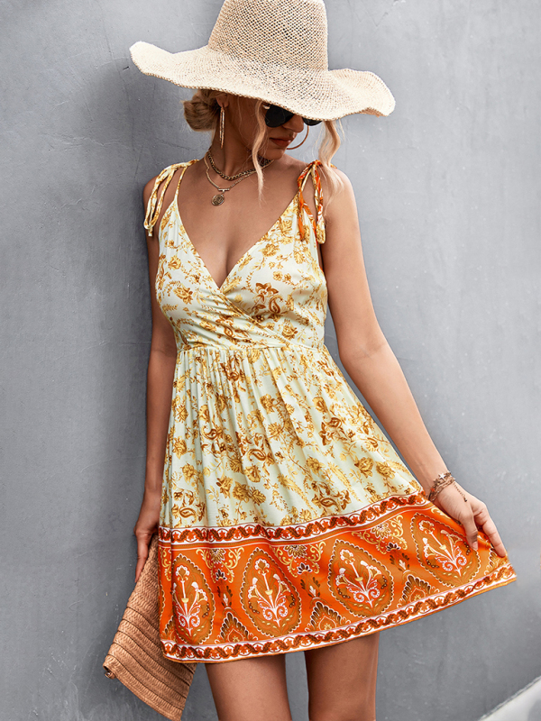 Women’s bohemian holiday style backless positioning flower dress