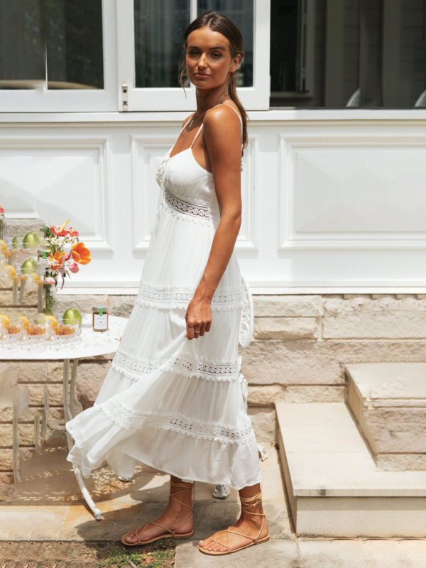 Women’s bohemian paneled lace midi dress featuring a modern silhouette in a soft and comfortable fabric. It can be worn daily, going out, and on vacation, and the washing method can be machine washed or hand washed. Fabric is wrinkle resistant and resistant to pilling. The size is measured by hand, and it is normal for there to be an error of 1-3cm.