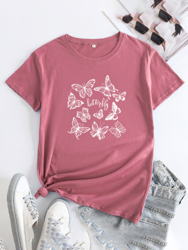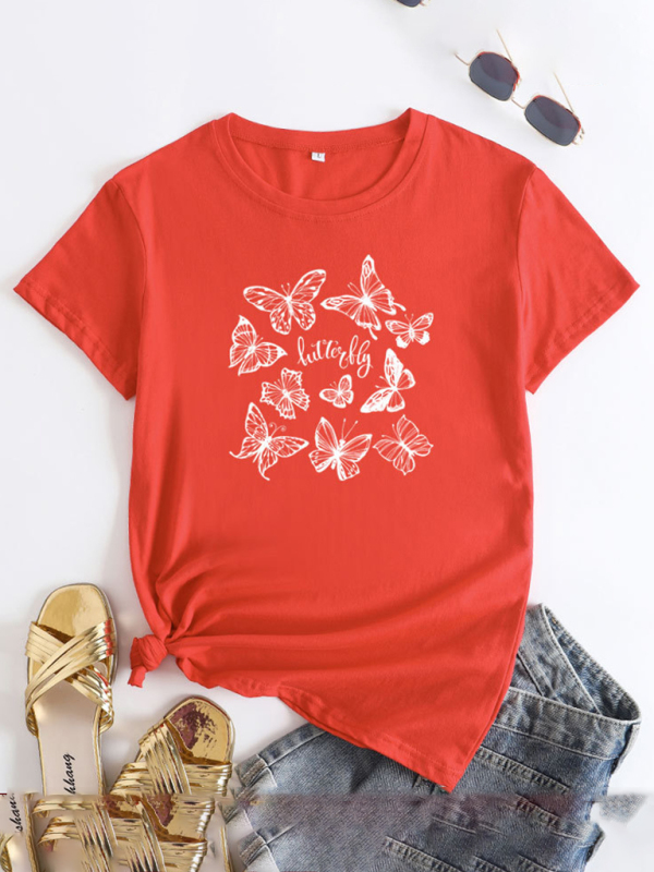 Women’s butterfly print round neck short-sleeved T-shirt, the simple design makes the boring season colorful and interesting. Please use the sizing guide shown in our images and please read each element of the sizing guide carefully before selecting a size. The size is measured manually, and there is an error of 1-3cm, which is normal.