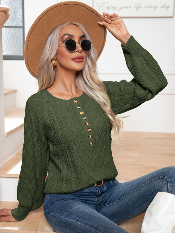 Women’s Casual Button Twist Long Sleeve Pullover Sweater. Please use the size guide shown in our pictures. Before choosing a size, please read each element of the size guide carefully. Unique design, classic style, casual and comfortable. It is suitable for outing and leisure. The size is measured manually, and the error of 1-3cm is normal.