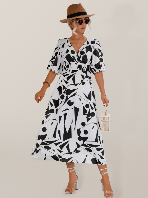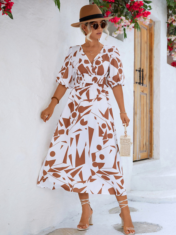 The new women’s casual vacation V-neck puff sleeve dress is suitable for many occasions, and the simple design makes the boring season colorful and interesting. A variety of collocation options make you confident and beautiful. It fits snugly without restricting your movement.