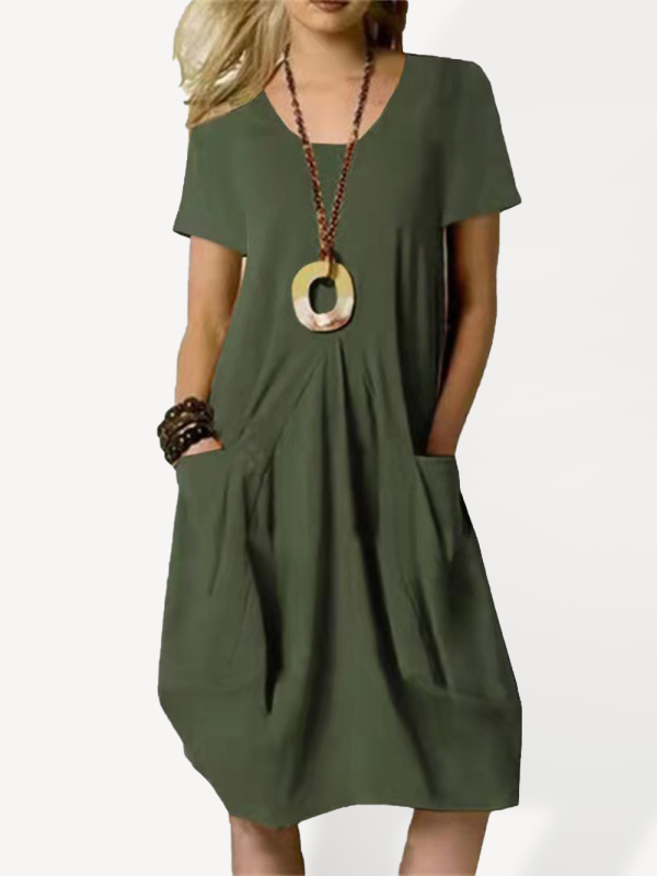 Design: Featuring a loose fit, round neck, and short sleeves, this dress is simple yet versatile, perfect for any occasion.