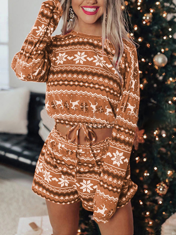 Women’s Christmas long-sleeved sweatshirt shorts set. Please use the size guide shown in our pictures. Before choosing a size, please read each element of the size guide carefully. Unique design, classic style, casual and comfortable. It is suitable for outing and leisure. The size is measured manually, and the error of 1-3cm is normal.