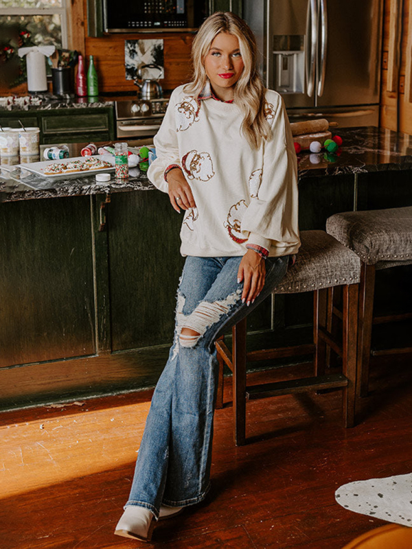 Women’s Christmas Santa Claus Sequin Sweatshirt Casual Style Loose Top