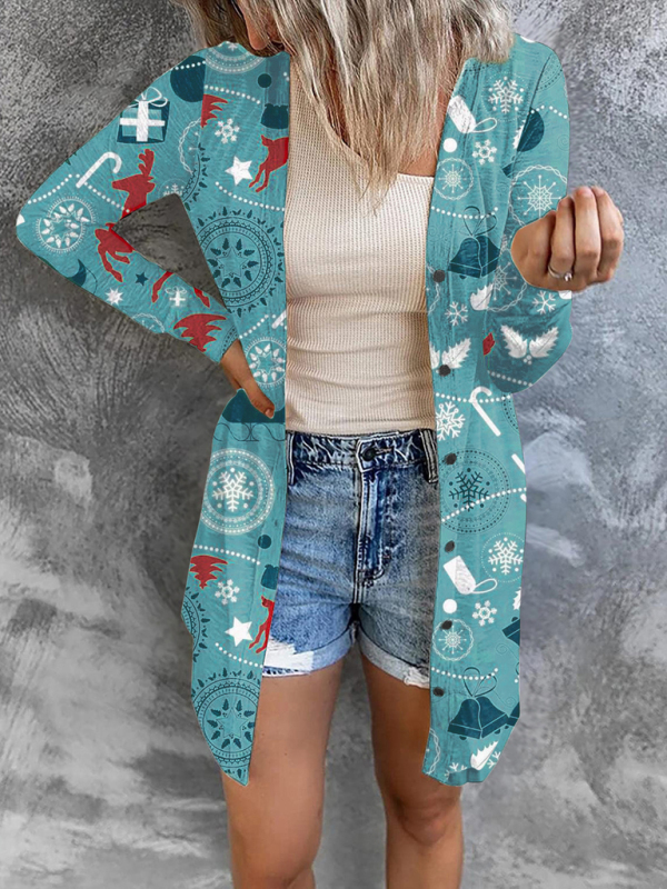 Christmas picture knitted cardigan, the pattern is a printing process, not a weaving process. The fabric is soft and comfortable, and the fabric itself is 180g in weight. There are no pockets on the top of the garment. The rich Christmas pattern is festive and suitable for Christmas. The size is measured by hand and there is an error of 1-3cm which is normal.