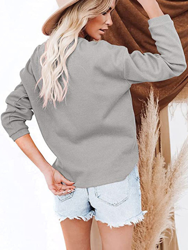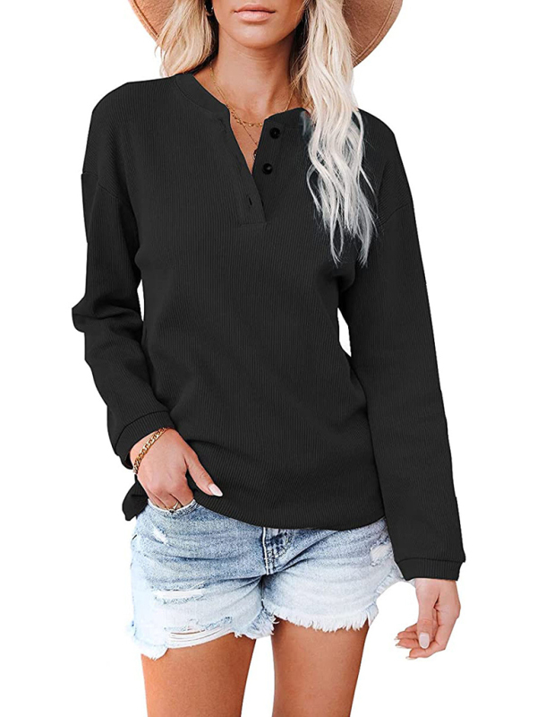 Women’s Clothes Amazon Hot Style V-neck Solid Color Long-sleeved Top T-Shirt Women