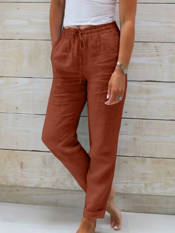 Women’s Elastic Waist Solid Color Wide Leg Pants Loose Trousers