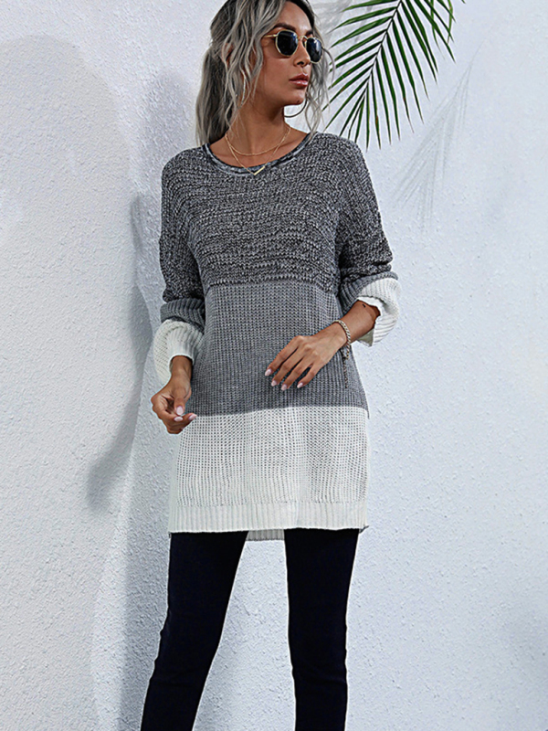 Design: This sweater features a crew neck and long sleeves, with a stylish contrast knit design that adds a touch of sophistication. The European and American influences are evident in the sleek and modern design.