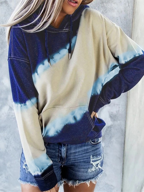 Gradient tie-dye hooded long-sleeve sweater, fashionable and beautiful. The fabric is soft and comfortable. Whether it is daily, shopping, party, etc., it can be worn, and the washing method can be machine washed or hand washed. Fabric is wrinkle resistant and resistant to pilling. The size is measured by hand, and it is normal for there to be an error of 1-3cm.