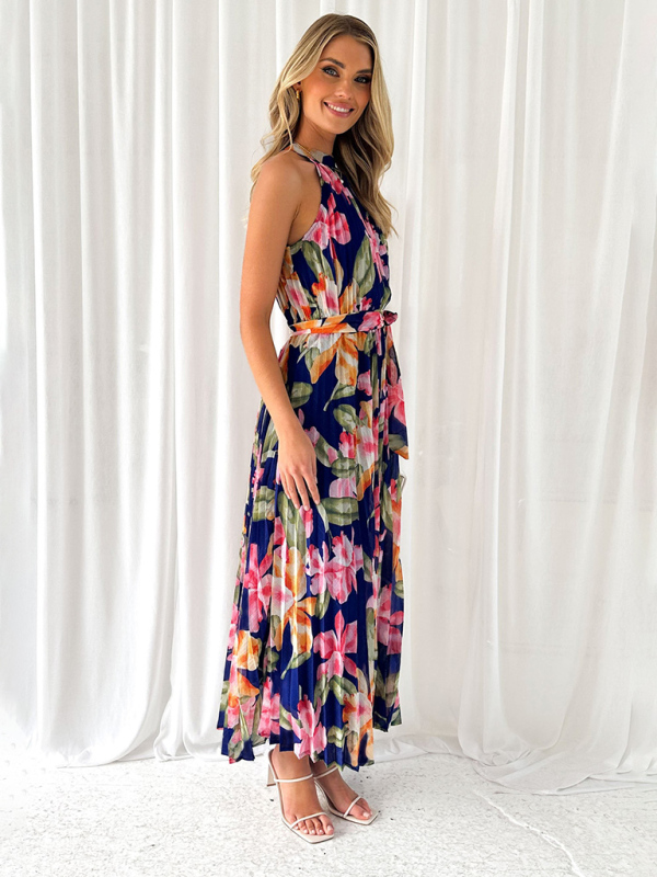 Women’s Halterneck Sleeveless Printed Casual Vacation Swing Dress. Please use the size guide shown in our pictures. Before choosing a size, please read each element of the size guide carefully. Unique design, classic style, casual and comfortable. It is suitable for outing and leisure. The size is measured manually, and the error of 1-3cm is normal.