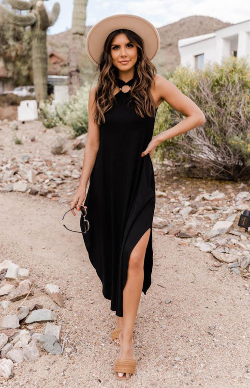 Embrace the essence of Bohemia with this women’s halter neck dress. Featuring a flattering hanging neck strap and a flowing silhouette, it offers slight elasticity for comfort. Perfect for casual outings or beach days. Wholesale and Dropshipping available.