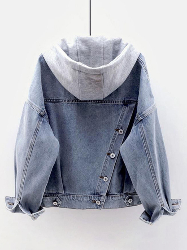 Women’s hooded large pocket denim jacket. Please use the size guide shown in our pictures. Before choosing a size, please read each element of the size guide carefully. Unique design, classic style, casual and comfortable. It is suitable for outing and leisure. The size is measured manually, and the error of 1-3cm is normal.