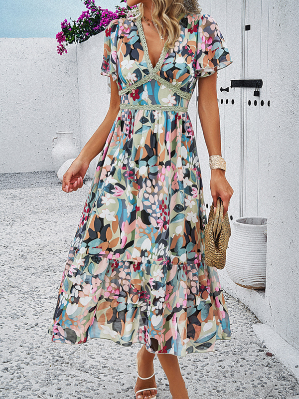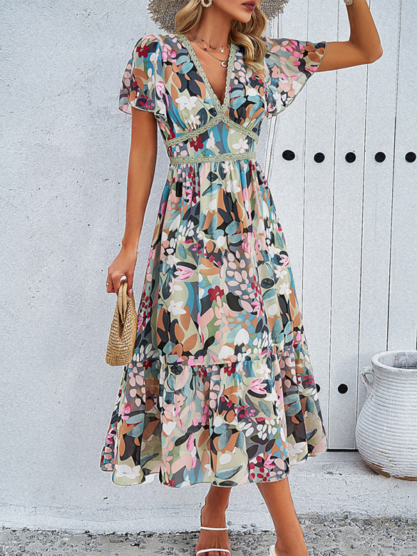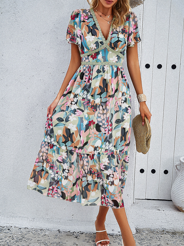 Women’s new casual holiday printed V-neck short-sleeved waist dress, the simple design makes the boring season colorful and interesting. When purchasing, it is recommended to pay attention to the appropriate size to ensure comfort and fit. Please read each element in the size guide carefully before choosing a size. Sizes are measured manually, and an error of 1-3cm is normal. In addition, it is important to understand the material and care requirements of the clothing in order to properly care for and maintain the clothing and extend its service life.