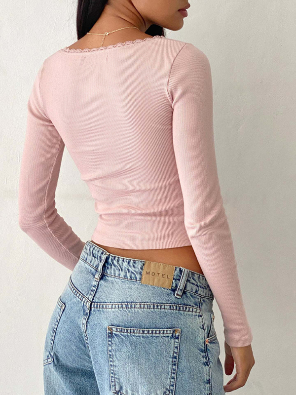 Women’s new fashion and sexy U-neck small lace knitted bottoming shirt