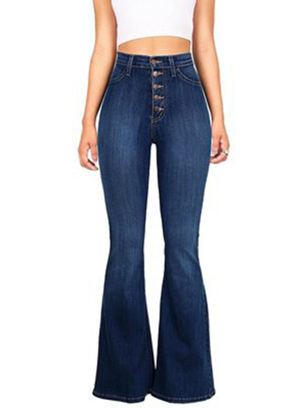 Women’s new high-waist washed button slim fit slightly flared wide-leg denim trousers