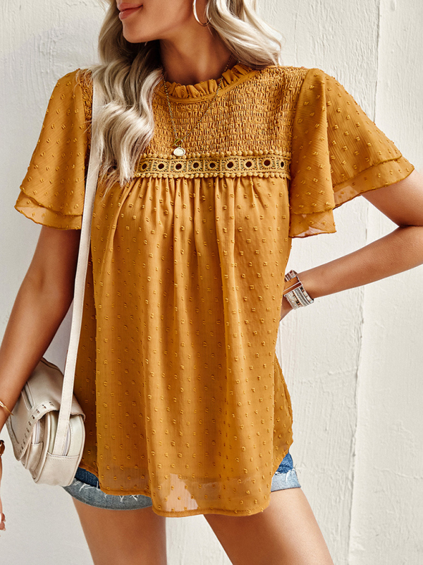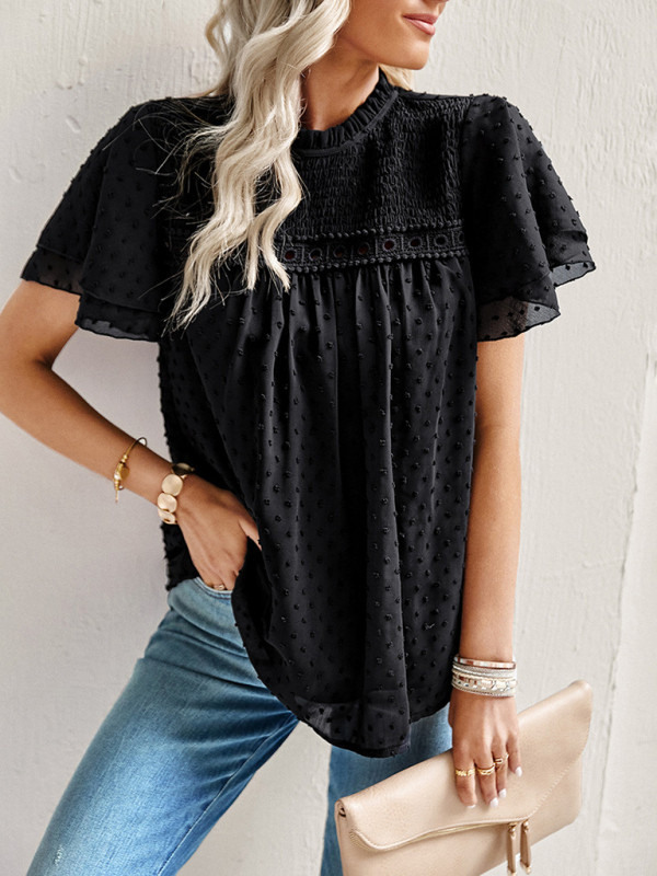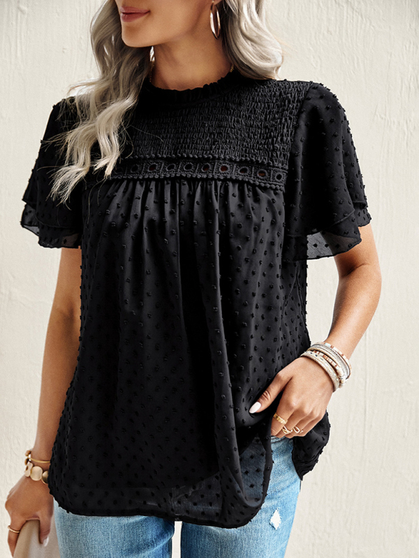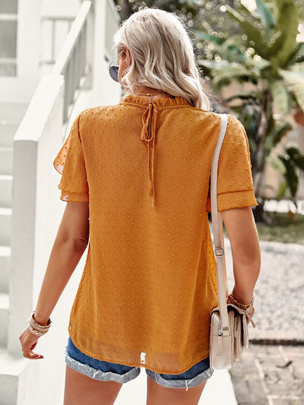 Women’s new jacquard temperament commuting short-sleeved shirt top, the simple design makes the boring season colorful and interesting. When purchasing, it is recommended to pay attention to the appropriate size to ensure comfort and fit. Please read each element in the size guide carefully before choosing a size. Sizes are measured manually, and an error of 1-3cm is normal. In addition, it is important to understand the material and care requirements of the clothing in order to properly care for and maintain the clothing and extend its service life.