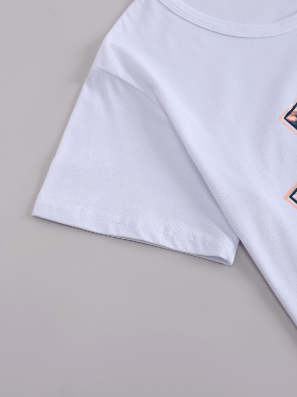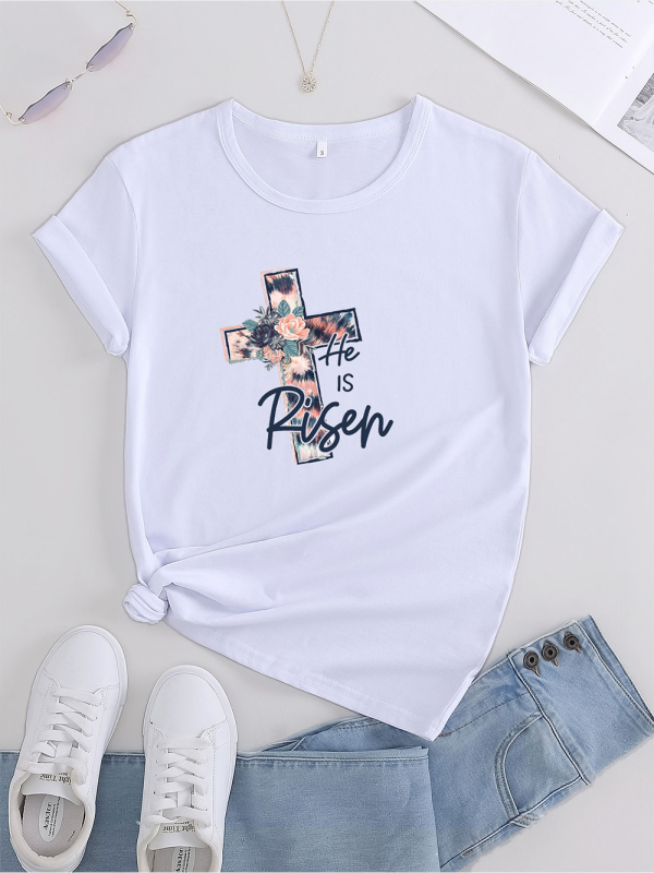 Add a stylish touch to your wardrobe with our Women’s Knitted Round Neck Cross Print Short Sleeve T-Shirt. Made from 100% cotton, this tee features a unique cross print design. Perfect for casual outings, pair it with jeans or shorts for a fashionable look.