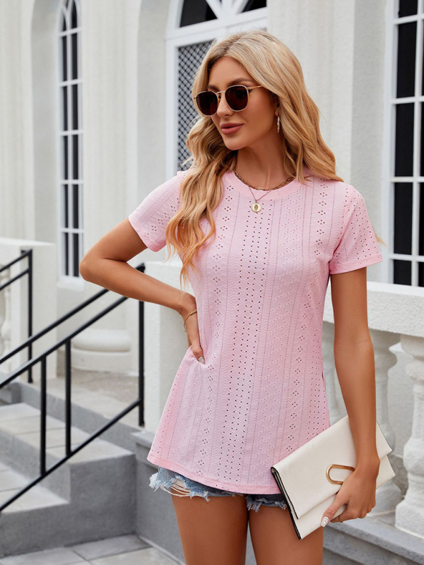 Women’s round neck slit short sleeve loose T-shirt top. Please use the size guide shown in our pictures. Before choosing a size, please read each element of the size guide carefully. Unique design, classic style, casual and comfortable. It is suitable for outing and leisure. The size is measured manually, and the error of 1-3cm is normal.
