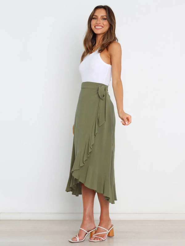 Design: This skirt features an irregular hemline and a stylish tie detail, adding a touch of uniqueness and trendiness to your look.