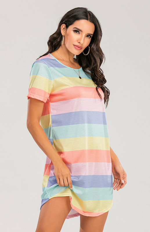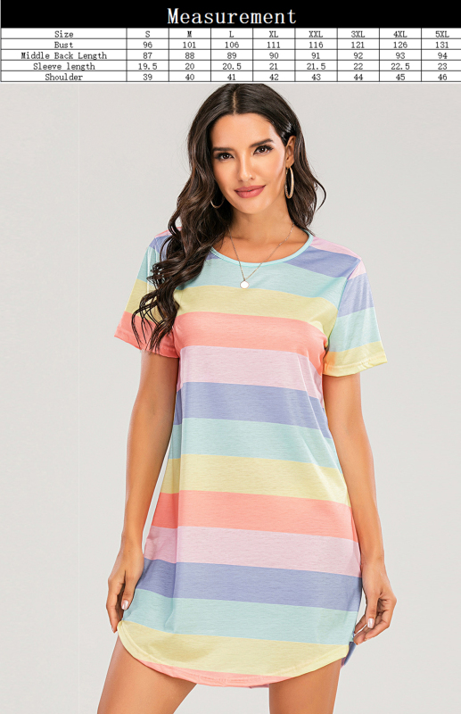 Women’s Short Sleeve Rainbow Striped Loose T-Shirt Pyjama Sets