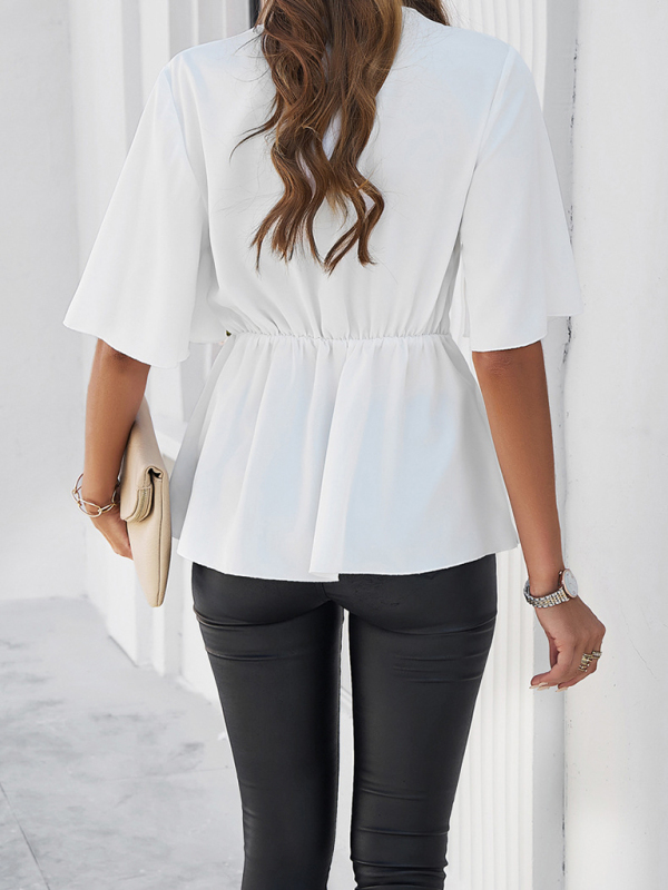 Women’s solid color elegant short sleeve strappy tunic top