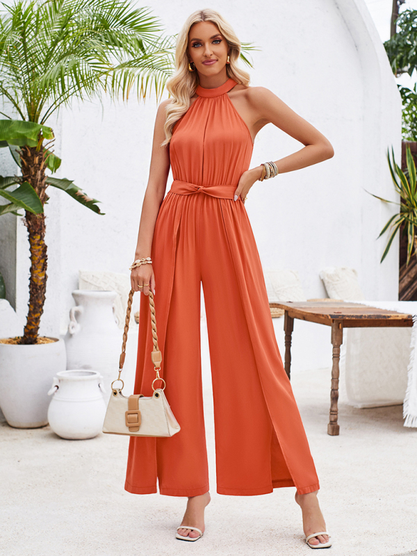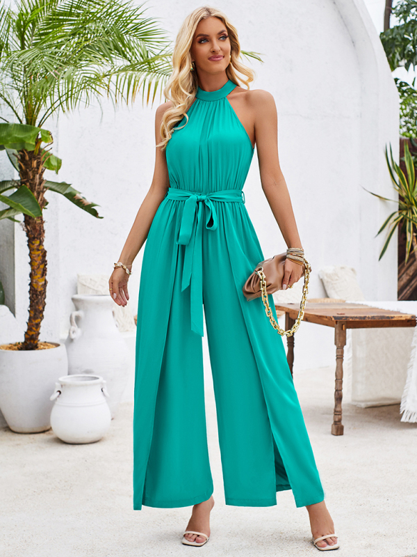 Women’s solid color halterneck strappy jumpsuit