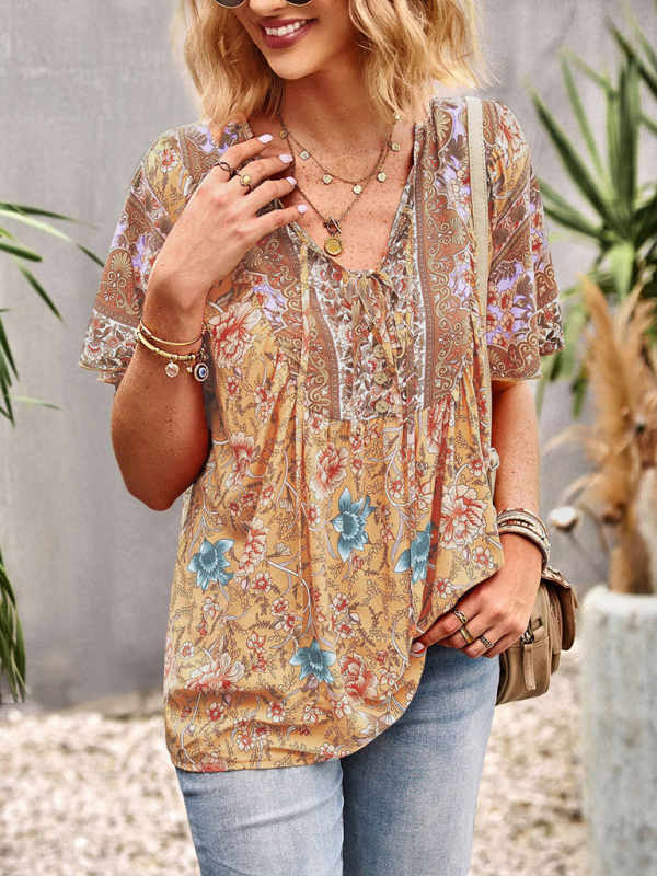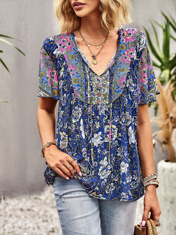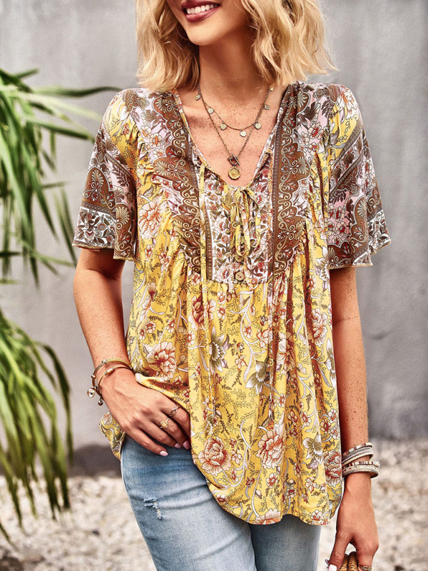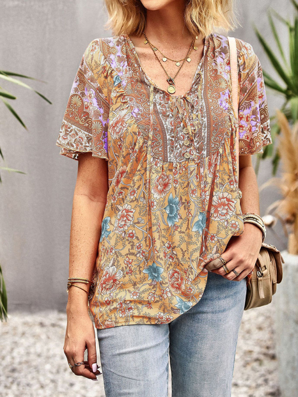 Women’s Round Neck Loose Casual Fashion Stitching Lace Short Sleeve Top. Please use the size guide shown in our pictures. Before choosing a size, please read each element of the size guide carefully. Unique design, classic style, casual and comfortable. It is suitable for outing and leisure. The size is measured manually, and the error of 1-3cm is normal.