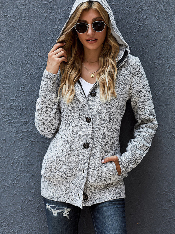 Women’s warm casual hooded long-sleeved cardigan knitted. Please use the size guide shown in our pictures. Before choosing a size, please read each element of the size guide carefully. Unique design, classic style, casual and comfortable. It is suitable for outing and leisure. The size is measured manually, and the error of 1-3cm is normal.